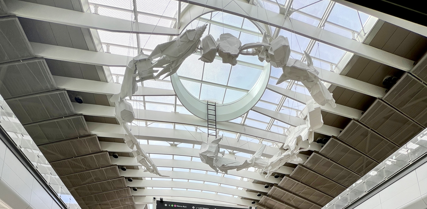 The centerpiece of the new LAX/Metro Transit Center is The Distance of the Sun, a soaring sculpture by artist Glenn Kaino.